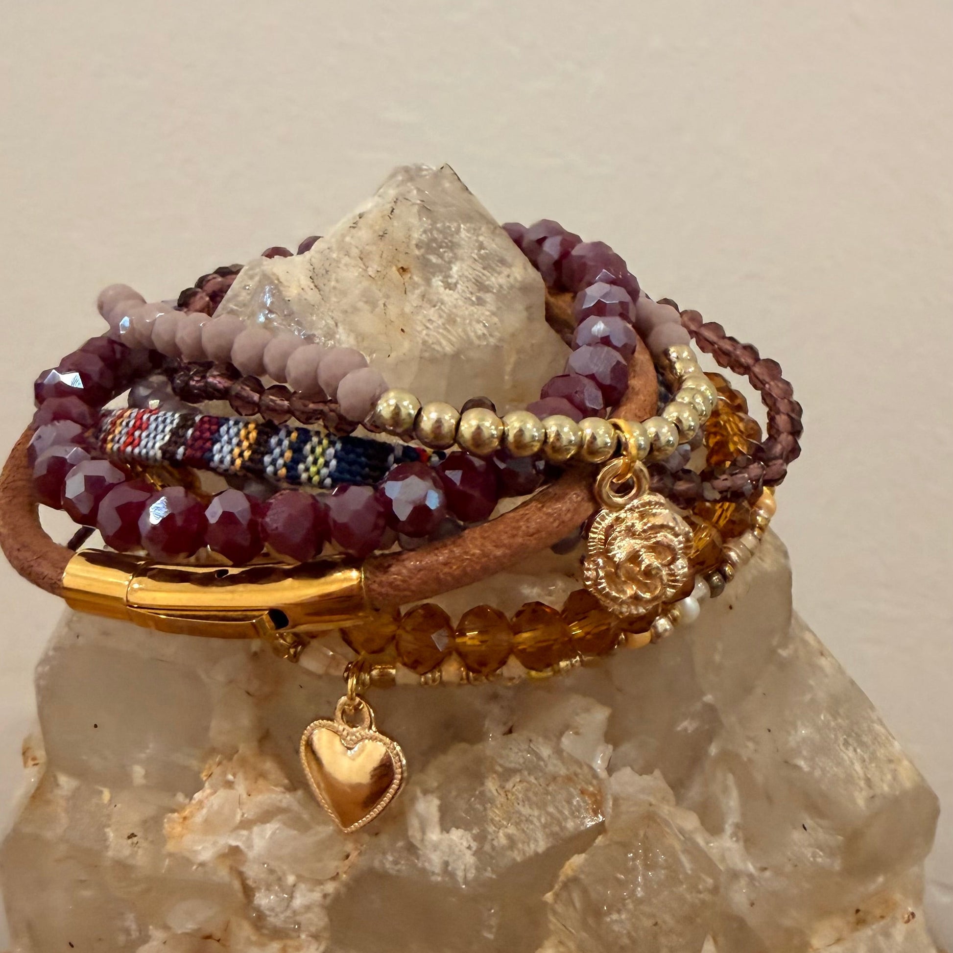 Perfect for layering or wearing on its own, this bracelet stack is designed to elevate casual outfits, complement dressed-up looks, and make a meaningful addition to your jewelry collection. Whether you’re drawn to these bracelets for their aesthetic, symbolism, or everyday versatility, each stack is created with intention and attention to detail.